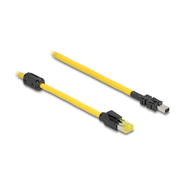 "DeLOCK 81252. Cable length: 3 m, Cable standard: Cat6, Connector 1: RJ-45, Connector 2: 8-pin terminal block, Product colour: Black, Yellow"\n"This cable by Delock can be used to connect devices with an RJ45 connection and devices that use a mini I/O connector in D-shape. It is often found in industrial automation applications and is suitable for e.g. machines or control systems."