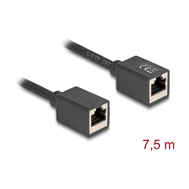 "DeLOCK 90334. Cable length: 7.5 m, Cable standard: Cat6a, Cable shielding: S/FTP (S-STP), Connector 1: RJ-45, Connector 2: RJ-45, Product colour: Black"\n"This network cable by Delock can be used to extend and connect various devices.