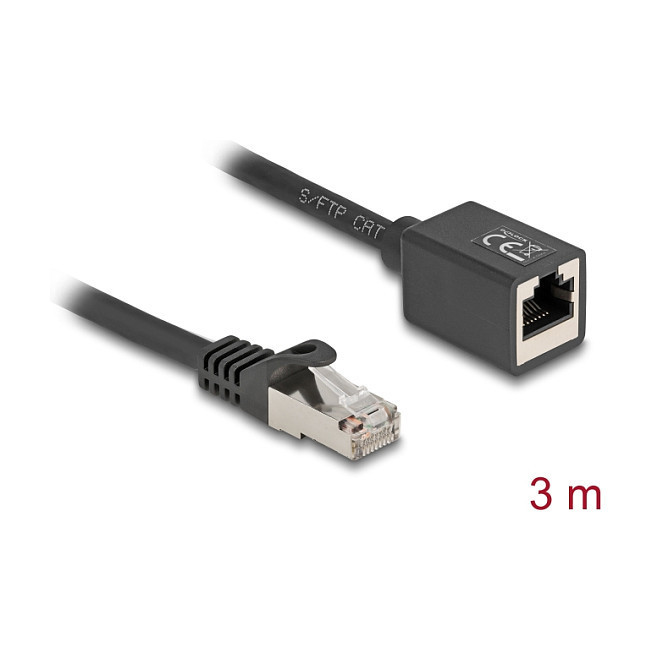 Delock Netzwerk Verlängerungskabel RJ45 Stecker zu RJ45 Buchse Cat.6A S/FTP 3 m schwarz