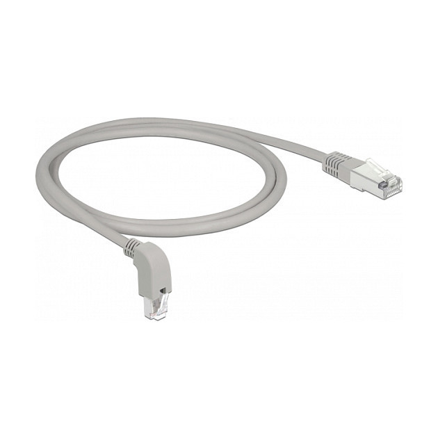 "DeLOCK 85874. Cable length: 1 m, Cable standard: Cat6a, Cable shielding: S/FTP (S-STP), Connector 1: RJ-45, Connector 2: RJ-45, Connector contacts plating: Copper, Product colour: Grey"\n"This network cable by Delock can be used to connect different networking devices, e.g. a NIC to a switch or a patch panel. The angled plug enables a space-saving installation in tight spaces behind appliances or in network closets."
