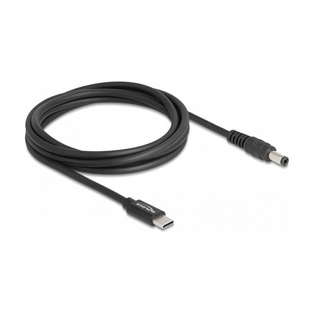 "DeLOCK Laptop Charging Cable USB Type-C male to 5.5 x 2.1 mm male. Cable length: 1.5 m, Connector 1: USB C, Connector 2: 5.5 x 2.1 mm. Input voltage: 20 V, Input current: 3 A"\n"With this cable by Delock you can charge your laptop at a USB Type-C™ socket."