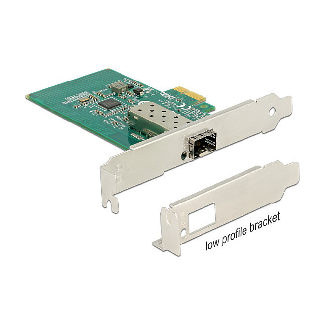 "DeLOCK 89481. Internal. Connectivity technology: Wired, Host interface: PCI Express, Interface: Fiber. Maximum data transfer rate: 1000 Mbit/s"\n"This Delock PCI Express network card provides a connection for an SFP module with a transfer rate of 1000 Mb/s. The SFP slot accepts an optional Gigabit SFP module from Delock to connect a PC via a fiber optic cable to the network."