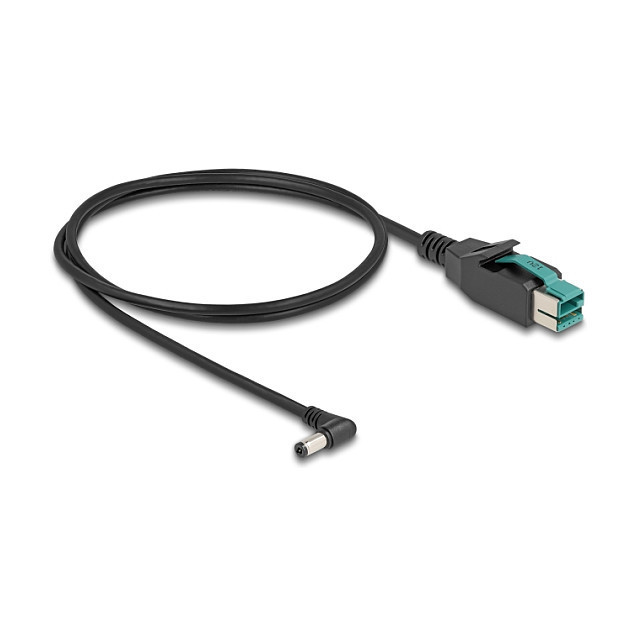 "DeLOCK PoweredUSB cable male 12 V to DC 5.5 x 2.1 mm male angled 1 m. Connector 1: USB, Connector 2: DC 5.5, Cable length: 1 m. Product colour: Black"\n"This PoweredUSB cable by Delock can be used to supply power to a device with DC 5.5 x 2.1 mm female port via a PC or hub with PoweredUSB 12 V port."