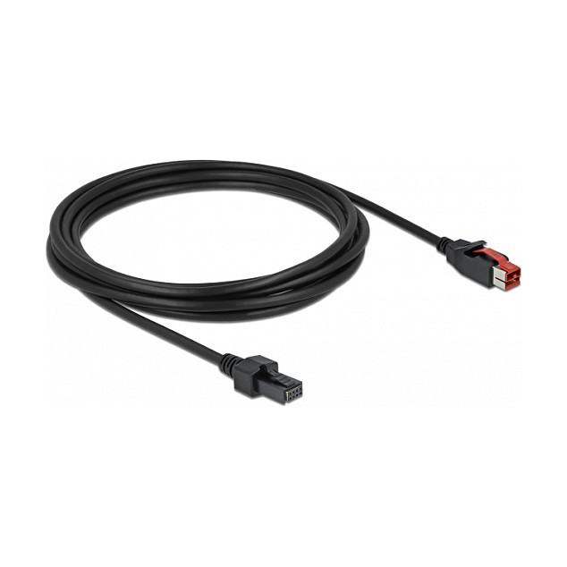 "DeLOCK PoweredUSB cable male 24 V to 2 x 4 pin male 3 m for POS printers and terminals. Cable length: 3 m, Connector 1: 2 x 4 pin mini DIN, Connector 2: PoweredUSB. Input voltage: 24 V"\n"This PoweredUSB cable by Delock can be used to connect a device with 2 x 4 pin port to a PC or hub with PoweredUSB 24 V port. It is suitable for connecting various POS devices such as printers and terminals, e.g. by IBM, NCR or Hypercom. The cable is used both for data transmission and for power supply of the connected device."