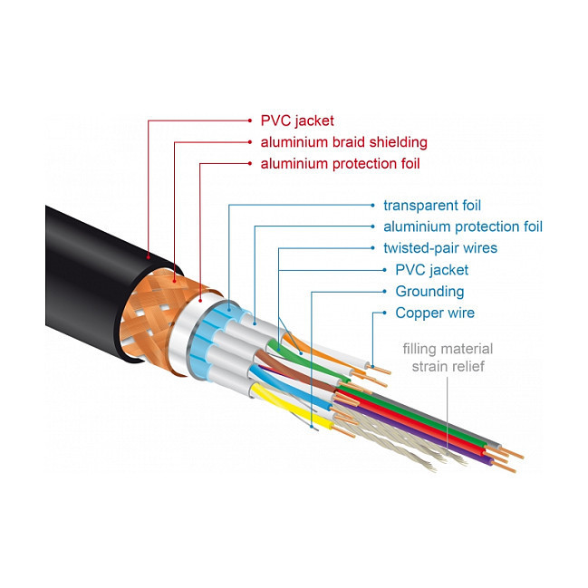 The cable is characterised by the additional metal shielding of the plugs and the gold-plated contacts. It guarantees interference-free audio and video signal transmission thanks to its triple shielding and particularly dense braiding."