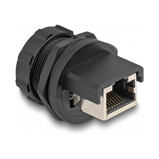 This RJ45 coupler by Delock can be used in a switch cabinet or distribution box to connect or extend two RJ45 plugs together. In combination with the Delock feed-through coupler (86995), it provides a secure and waterproof connection.