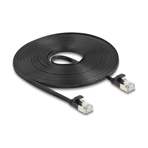 Delock RJ45 Flachband Patchkabel Stecker zu Stecker Cat.6A U/FTP 7,5 m schwarz