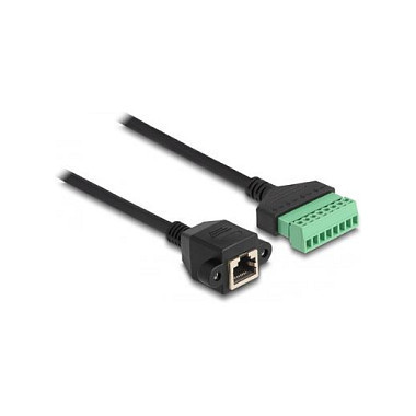 "DeLOCK RJ45 Cable Cat.6 female to Terminal Block Adapter for built-in 1 m 2-part. Cable length: 1 m, Cable standard: Cat6, Cable shielding: U/UTP (UTP), Connector 1: RJ-45, Product colour: Black, Green"\n"This cable by Delock can be used to extend and connect various network devices. Strands with stripped ends can be connected via the terminal block. The screwable RJ45 jack can be attached, for e.g., to a slot bracket or a housing with a suitable cut-out."