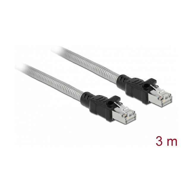 "DeLOCK RJ45 Cable Cat.6A U/FTP with metal jacket 3 m. Cable length: 3 m, Cable standard: Cat6a, Cable shielding: U/FTP (STP), Connector 1: RJ-45, Connector 2: RJ-45, Product colour: Stainless steel"\n"This network cable by Delock can be used to connect different networking devices, e.g. a NIC to a switch or a patch panel.