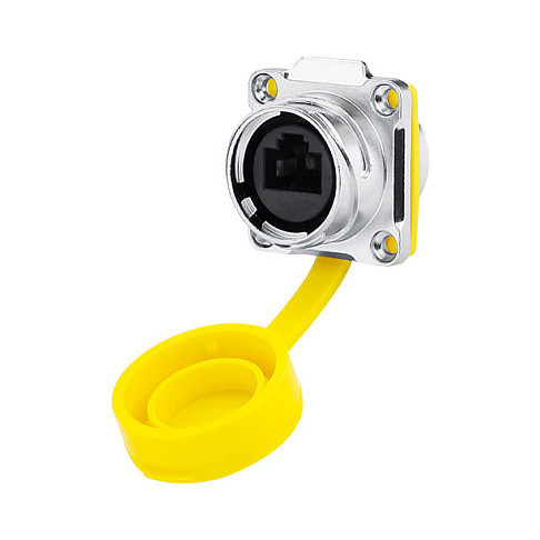 The angled plug enables a space-saving installation in tight spaces behind appliances or in network closets."