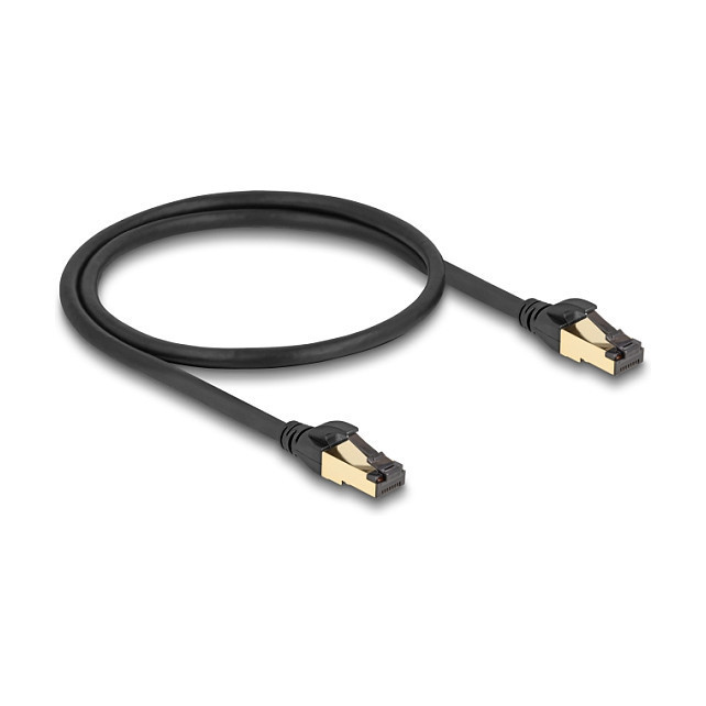 "DeLOCK RJ45 Network Cable Cat.6A male to male S/FTP black 50 cm with Cat.7 raw cable suitable for industrial and outdoor use. Cable length: 0.5 m, Cable standard: Cat7, Cable shielding: S/FTP (S-STP), Connector 1: RJ-45, Connector 2: RJ-45, Product colour: Black"\n"This network cable by Delock can be used to connect different networking devices, e.g. a NIC to a switch or a patch panel.
