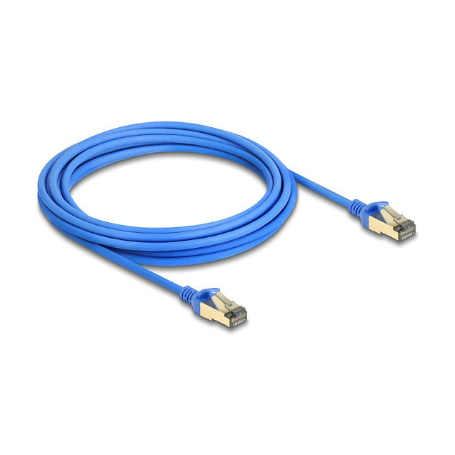 "DeLOCK RJ45 Network Cable Cat.8.1 F/FTP Slim 5 m blue. Cable length: 5 m, Cable standard: Cat8.1, Cable shielding: F/FTP (FFTP), Connector 1: RJ-45, Connector 2: RJ-45, Data transfer rate: 40000 Mbit/s, Product colour: Blue"\n"This network cable by Delock can be used to connect various devices and is suitable for 40GBASE-T Ethernet applications with a frequency of 2 GHz and a data transfer rate of up to 40 Gbps.