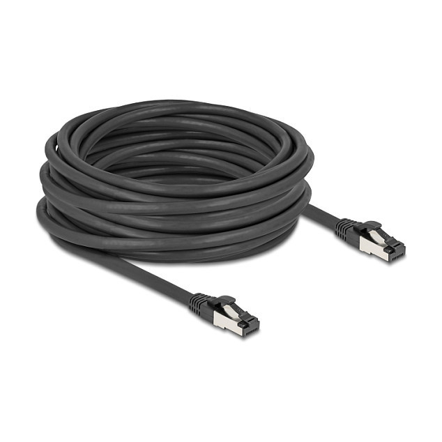 "DeLOCK 80575. Cable length: 10 m, Cable standard: Cat8.1, Cable shielding: S/FTP (S-STP), Connector 1: RJ-45, Connector 2: RJ-45, Data transfer rate: 40000 Mbit/s, Product colour: Black"\n"This network cable by Delock can be used to connect various devices and is suitable for 40GBASE-T Ethernet applications with a frequency of 2 GHz and a data transfer rate of up to 40 Gbps"