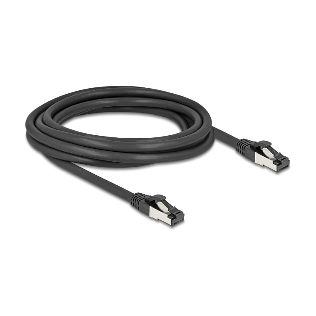 "DeLOCK 80573. Cable length: 3 m, Cable standard: Cat8.1, Cable shielding: S/FTP (S-STP), Connector 1: RJ-45, Connector 2: RJ-45, Data transfer rate: 40000 Mbit/s, Product colour: Black"\n"This network cable by Delock can be used to connect various devices and is suitable for 40GBASE-T Ethernet applications with a frequency of 2 GHz and a data transfer rate of up to 40 Gbps"