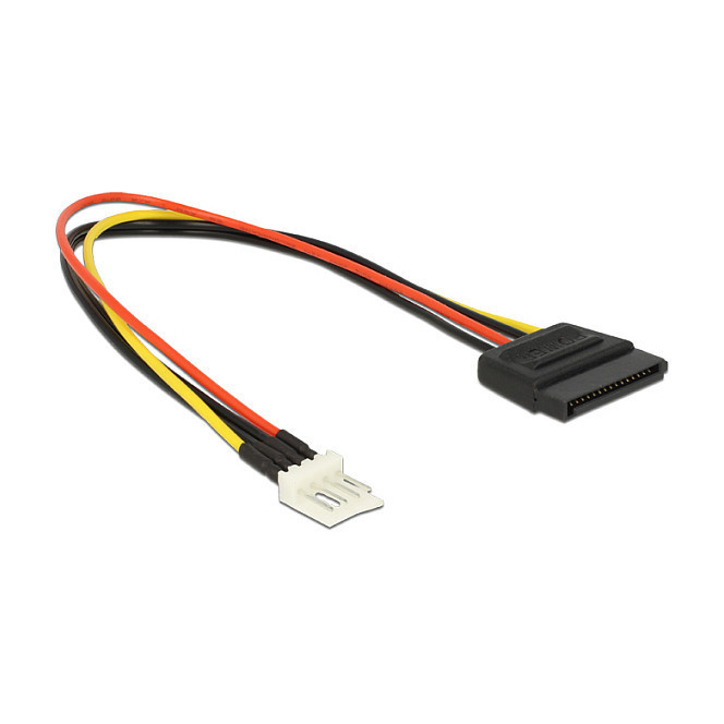 "DeLOCK 0.24m SATA 15p / 4p. Connector 1: SATA 15-pin, Connector 2: 4-pin PWM, Cable length: 0.24 m. Package type: Polybag"\n"This power cable by Delock can be connected to a 4 pin floppy power connector of a power supply unit and enables the power supply of a drive with SATA 15 pin interface."