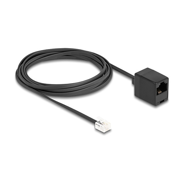 "DeLOCK Telephone Cable RJ11 plug to RJ45 jack black 3 m. Cable length: 3 m, Connector 1: RJ-11, Connector 2: RJ-45. Package type: Polybag"\n"This modular cable by Delock can be used as a connection cable for analogue telephones, ADSL routers, modems and splitters.