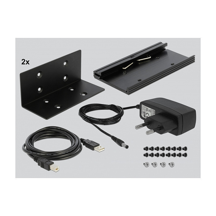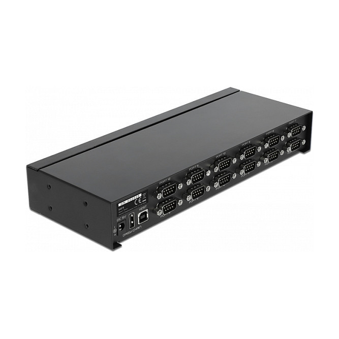 "DeLOCK 64070. Host interface: USB 2.0, Hub interfaces: RS-232, USB 2.0. Data transfer rate: 0.4608 Mbit/s, Product colour: Black, Housing material: Metal. Input voltage: 100 - 240 V, Input current: 0.2 A, AC input frequency: 50 - 60 Hz. Windows operating systems supported: Windows 10, Windows 7, Windows 8.1. Width: 102 mm, Depth: 268 mm, Height: 40 mm"\n"This compact RS-232 hub with High Speed USB 2.0 to 12 x RS-232 serial by Delock supports connections for printers, controllers, measuring devices etc. Up to four of these hubs can be cascaded (series connection), thus up to 48 RS-232 ports are provided on one USB 2.0 port. The LEDs on each single port indicate the current RS-232 status. A Windows application supports centralized control of the serial COM ports. The hub is suitable as a desktop device and for wall or DIN rail mounting."