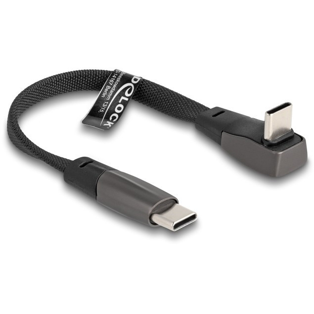 "DeLOCK USB 2.0 Flat Ribbon Cable USB Type-C male to USB Type-C male angled PD 3.0 60 W 14 cm black. Cable length: 0.14 m. Connector 1: USB C, Connector 2: USB C, USB version: USB 2.0, Maximum data transfer rate: 0.48 Gbit/s, Product colour: Black"\n"This USB flat ribbon cable by Delock enables the connection between a device with a USB Type-C™ connector and a PC or a laptop equipped with a free USB Type-C™ port. Optically it convinces with its fine textile shielding and with its connector in metal housing. Supporting the USB Power Delivery standard, connected devices can be powered up to 60 W (20 V / 3 A)."