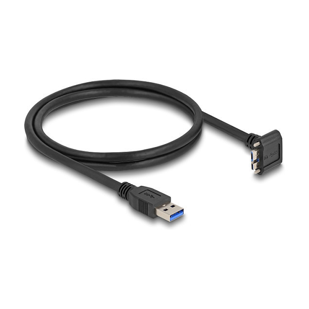 "DeLOCK USB 5 Gbps Cable USB Type-A male straight to USB Micro-B male with screw distance 18 mm 90° upwards angled 1 m black. Cable length: 1 m. Connector 1: USB A, Connector 2: Micro-USB B, USB version: USB 3.2 Gen 1 (3.1 Gen 1), Maximum data transfer rate: 5 Gbit/s, Product colour: Black"\n"This USB cable by Delock enables the connection between a device with a USB Micro-B connector and a PC or a laptop equipped with a free USB Type-A port.