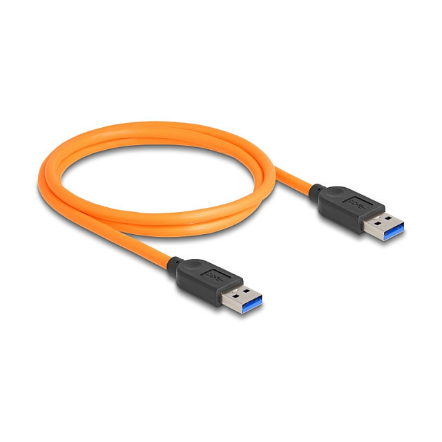 "DeLOCK USB 5 Gbps Cable USB Type-A male to USB Type-A male for tethered shooting 1 m orange. Cable length: 1 m. Connector 1: USB A, Connector 2: USB A, Maximum data transfer rate: 5 Gbit/s, Product colour: Black"\n"Description