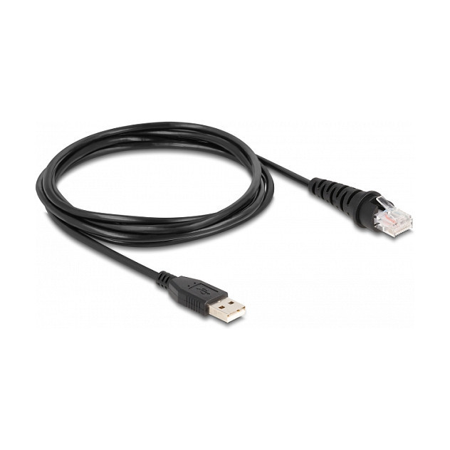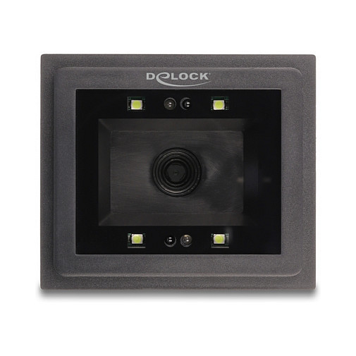 "DeLOCK USB Barcode Scanner 1D and 2D wired for stationary installation - German Version. Type: Built-in bar code reader, Scanner type: 1D/2D, Sensor type: CMOS. Connectivity technology: Wired, Standard interfaces: RJ-50, Cable length: 1.5 m. Product colour: Black. Power source type: USB, Input voltage: 5 V, Power consumption: 100 mA. Weight: 173 g, Width: 67 mm, Depth: 78 mm"\n"This stationary barcode scanner by Delock is ideal for space-saving installation in a table top and connection to the system. It is also ideal for use in access control, for example in a digitalised turnstile. All common 1D and 2D barcode types can also be precisely captured from the smartphone.