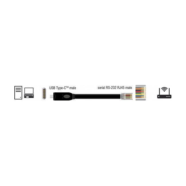"DeLOCK 63912. Product colour: Black, Cable length: 2 m, Connector 1: USB Type-C"\n"This USB 2.0 to RS-232 adapter by Delock is suitable for the console at CISCO routers, switches, access points and other compatible devices via PC or laptop."