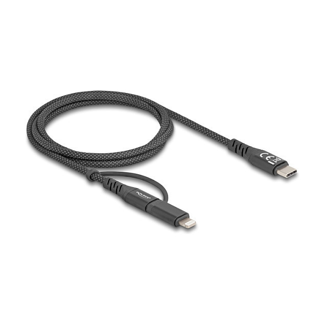 "DeLOCK 81170. Cable length: 1 m. Connector 1: USB C, Connector 2: USB C/Lightning, USB version: USB 2.0, Product colour: Black"\n"This 2 in 1 USB cable by Delock can be used as a data and charging cable for smartphones and is compatible with iPhone™, iPad™ and iPod™ with 8 pin Apple Lightning™ connector. With fast charge support, compatible Apple devices can also be connected to a USB Type-C™ PD charger for especially quick charging.