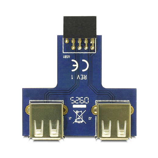 Delock USB Pin Header Buchse > 2 x USB 2.0 Buchse - oben