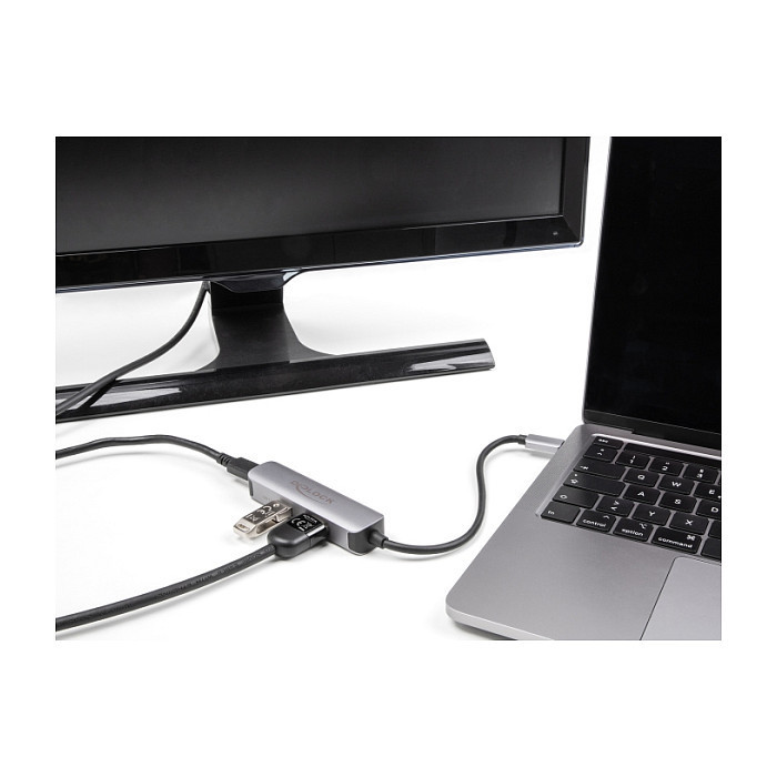 "DeLOCK USB Type-C Adapter to HDMI 4K 60 Hz with USB Type-A and USB Type-C Data + PD 92 W. Host interface: USB 3.2 Gen 1 (3.1 Gen 1) Type-C, Hub interfaces: HDMI, USB 3.2 Gen 1 (3.1 Gen 1) Type-A, USB 3.2 Gen 1 (3.1 Gen 1) Type-C. Data transfer rate: 5000 Mbit/s, Maximum refresh rate: 60 Hz, Supported graphics resolutions: 3840 x 2160. Power supply type: USB. Windows operating systems supported: Windows 10, Windows 10 x64, Windows 11, Other operating systems supported: Android, ChromeOS. Quantity per pack: 1 pc(s), Package type: Box"\n"This adapter by Delock is suitable for the connection of a HDMI monitor to a computer with USB-C™ interface and DisplayPort alternate mode support. Thus, the adapter can be connected to different laptops like MacBook, Chromebook and similar. In addition, the adapter can also be operated on a Thunderbolt™ 3 or Thunderbolt™ 4 interface.