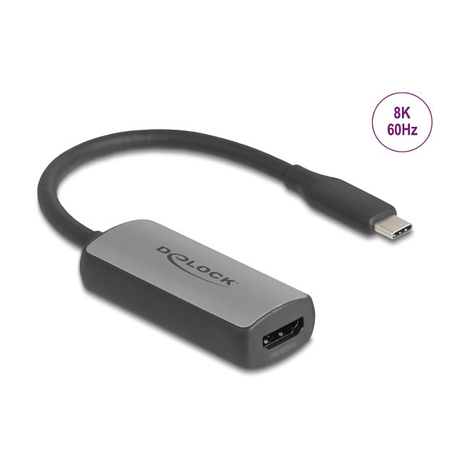 "DeLOCK 64264. Cable length: 0.17 m, Connector 1: USB Type-C, Connector 2: HDMI. Package type: Hanging box. Quantity per pack: 1 pc(s). Material: Aluminium"\n"This adapter by Delock is suitable for the connection of a HDMI monitor in 8K Ultra HD (7680 x 4320 @ 60 Hz) resolution to a computer with USB-C™ interface and DisplayPort alternate mode support. Thus, the adapter can be connected to different laptops like MacBook, Chromebook and similar. In addition, the adapter can also be operated on a Thunderbolt™ 3 or Thunderbolt™ 4 interface.