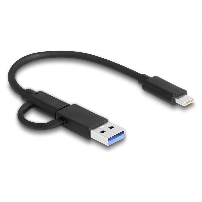 Due to the specially designed adapter, the Delock hub can be quickly and easily connected to the USB Type-A socket. Thus, it can be easily connected to new devices with USB Type-C™ female and older devices that only have a USB Type-A connector. The adapter is located directly on the cable and therefore it cannot be lost."