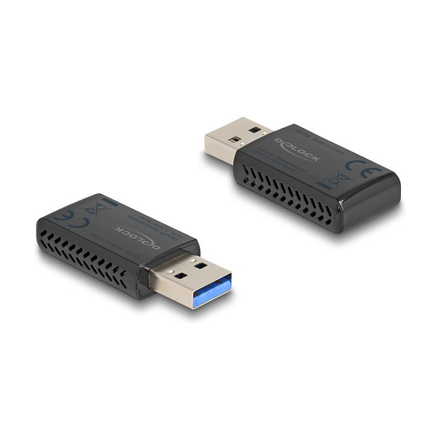 "DeLOCK Wi-Fi 6 Dual Band WLAN USB Stick AX1800 (1201 + 574 Mbps). Connectivity technology: Wireless, Host interface: USB, Interface: WLAN. Maximum data transfer rate: 1775 Mbit/s, Top Wi-Fi standard: Wi-Fi 6 (802.11ax), Wi-Fi band: Dual-band (2.4 GHz / 5 GHz). USB powered. Product colour: Black"\n"This Wireless LAN USB stick by Delock can be connected to a computer for the connection to a WLAN network. The WLAN stick can be used with an access point or WLAN router in the 2.4 GHz and 5 GHz band.