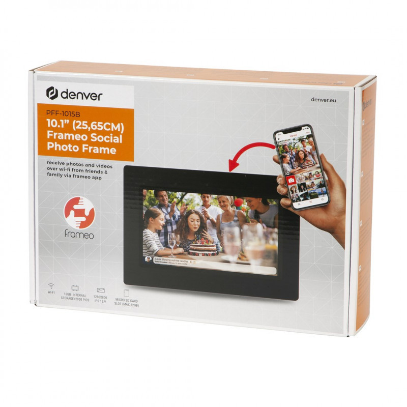Denver PFF-1015B skaitmeninis nuotraukų rėmelis Juoda 25,6 cm (10.1") Lietimui jautrus ekranas „Wi-Fi“