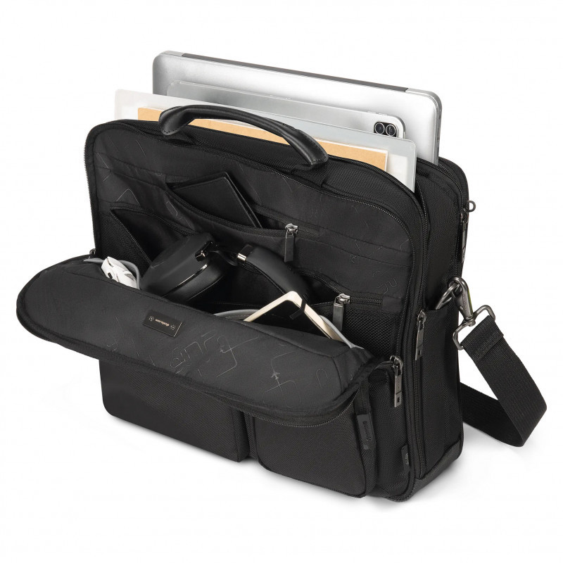 "DICOTA D3250801. Case type: Briefcase, Maximum screen size: 35.6 cm (14""), Surface coloration: Monochromatic"\n"The SEVEN Series is the new flagship in the DICOTA portfolio – our most advanced product line to date. It combines decades of expertise with the latest innovations and a clear vision to make mobile working safer, smarter and more sustainable. Developed from the strengths of the PRO series and inspired by the real needs of today's professionals, the SEVEN offers best-in-class functionality, protection and design. Every detail has been carefully designed: from DICOTA Cushion Technology and built-in RFID protection to a dedicated tracker compartment for added security. What really makes the series stand out is its sustainability inside and out. Both the exterior and interior are made of high-quality rPET materials, which give recycled plastic bottles a second life while ensuring the durability and premium feel you expect from DICOTA. The result is a series that sets new standards – durable, protective and sustainable, uncompromising. Choose the SEVEN if you want more: more security for your devices, smarter features for your workflow, and more security through sustainable design.