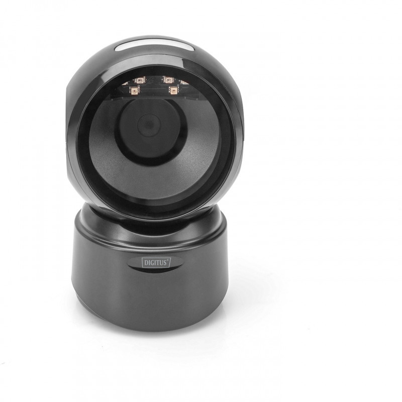 "Digitus 2D Desktop USB Barcode Scanner. Type: Barcode module bar code reader, Scanner type: 1D/2D, Sensor type: CMOS. Connectivity technology: Wired, Standard interfaces: USB. Product colour: Black, Processor architecture: ARM Cortex-A7, Country of origin: China. Power source type: USB. Weight: 250 g, Width: 85 mm, Depth: 85 mm"\n"Omni-directional bar code scanner with a scanning performance of up to 200 scans/s and elegant design for reliable use in checkout areas of pharmacies, supermarkets and other retail facilities