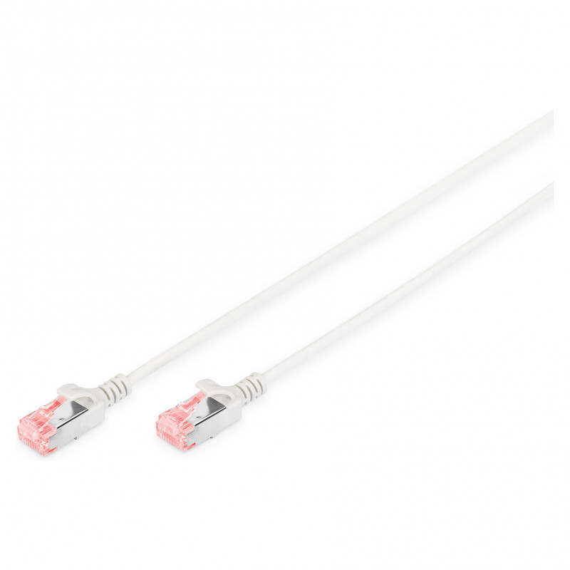 The DIGITUS® Category 6 Class E patch cords are manufactured and tested to the ISO/IEC 11801 and DIN EN 50173 Category 6 specifications. They will guarantee the installed cabling system is compliant with the ISO & EN channel specification requirements and will provide optimum performance levels of DIGITUS® Category 6 cabling. The performance is tested up to 250 MHz inclusive performance characteristics such as near end cross talk (“NEXT”). DIGITUS® patch cords are designed and produced to fulfill the highest requirements of various application areas in full volume. Each cable is fitted with a molded boot which comes with kink protection and strain relief. Furthermore the boot is equipped with a latch protection that prevents the latching lever against breaking. You can easily identify the Category 6, because of the transparent red colored connector."