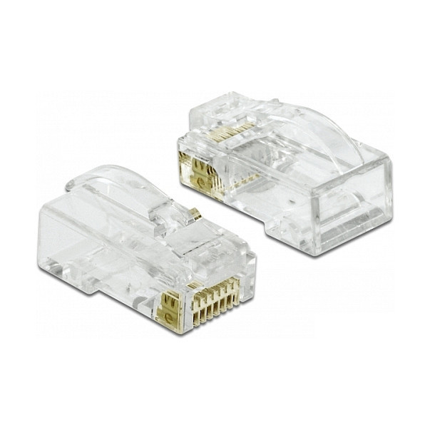 - Transparent red colored plug with metal shielding for easy identification of Category 6 (250 MHz)