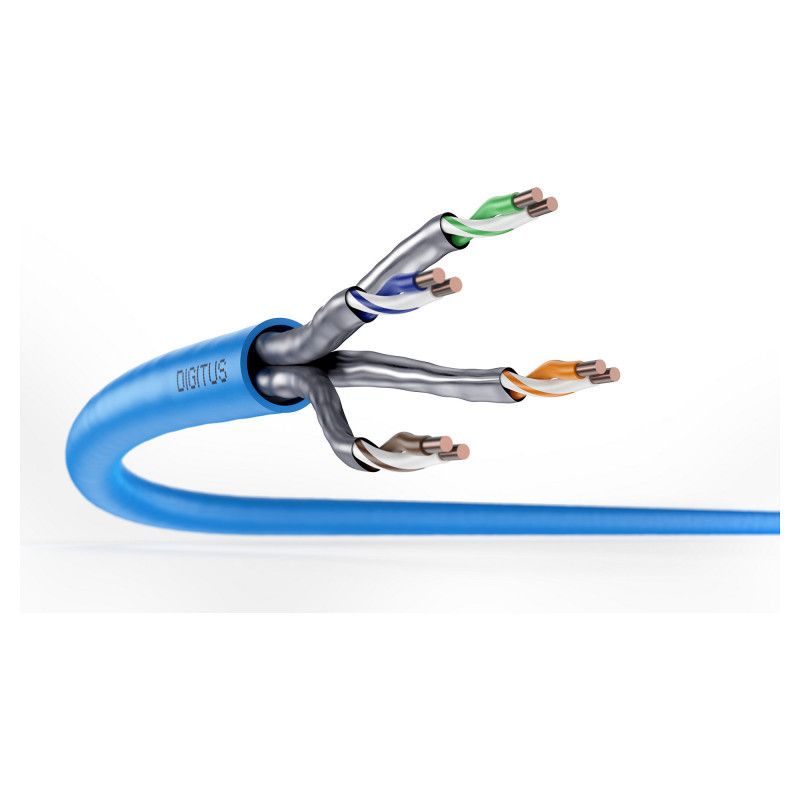 "Digitus CAT 6A U/FTP installation cable, 100 m, simplex, Eca. Cable length: 100 m, Cable standard: Cat6a, Cable shielding: U/FTP (STP), Product colour: Blue"\n"Future-oriented standards and high-end quality for your network.