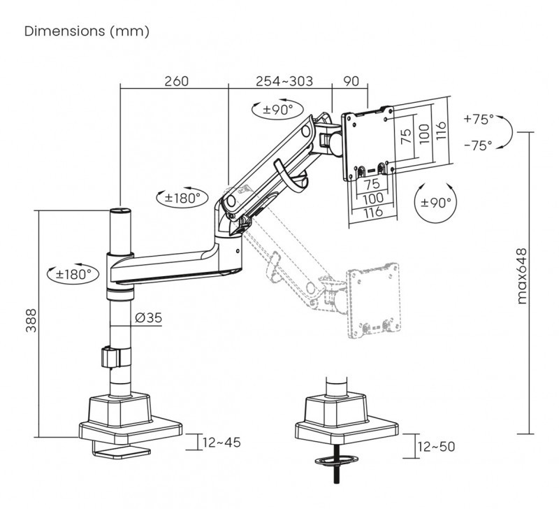 Digitus DA-90475 monitoriaus laikiklis arba stovas 144,8 cm (57") Stalas Juoda