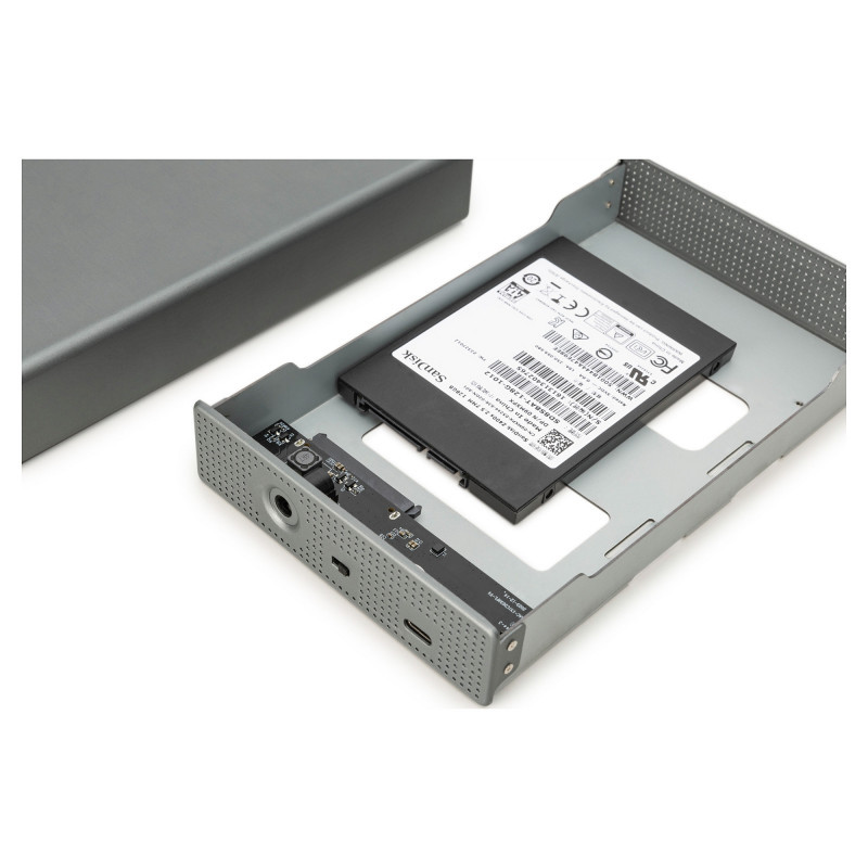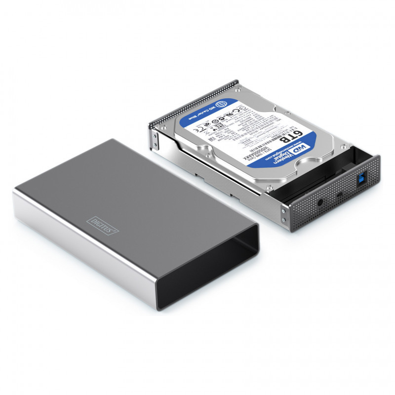 "Digitus USB 3.0 hard disk enclosure, 3.5"", SATA, 16TB, aluminum. Product type: HDD enclosure. Number of storage drives supported: 1, Storage drive size: 2.5/3.5"", Supported storage drive interfaces: Serial ATA III, Maximum storage capacity: 16 TB. Data transfer rate: 5 Gbit/s. Product colour: Aluminium. USB connector type: USB Type-B"\n"The DA-71106-1 hard disk enclosure will be your preferred solution for high capacity and high speed external storage.
