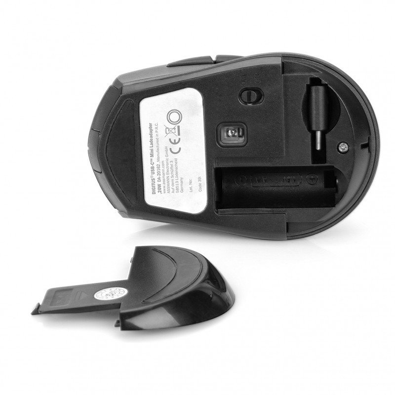 "Digitus Wireless Optical Mouse, 6 buttons, 1600 dpi. Form factor: Ambidextrous. Movement detection technology: Optical, Device interface: RF Wireless, Movement resolution: 1600 DPI, Buttons type: Pressed buttons, Buttons quantity: 6, Scroll type: Wheel. Power source: Batteries. Product colour: Black, Grey"\n"Comfortable and reliable control for your workplace