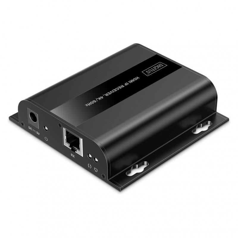 Expand your existing HDMI IP Extender Set (DS-55351) with additional receiver units and bring your AV content to up to 253 displays simultaneously - ideal for digital signage, conference rooms or large-scale presentations. Thanks to IP-based signal transmission via an existing 1G network infrastructure or additional 1G network switches, you can distribute content flexibly and over unlimited distances. The cascading option ensures maximum scalability and easy integration into your system. Enjoy razor-sharp images in UHD resolution of up to 4K/60Hz (4096x2160p) with a minimum latency of just 150-220 ms. The integrated IR interface enables remote control of the input source directly from the output screen, allowing you to conveniently manage your content. For a stable and reliable connection, we recommend the use of CAT6 or higher quality network cables. The receiver is also suitable for wall mounting, allowing for space-saving installation. Increase the efficiency of your AV solution with the HDMI IP Receiver 4K/60Hz - for impressive picture quality and maximum flexibility."