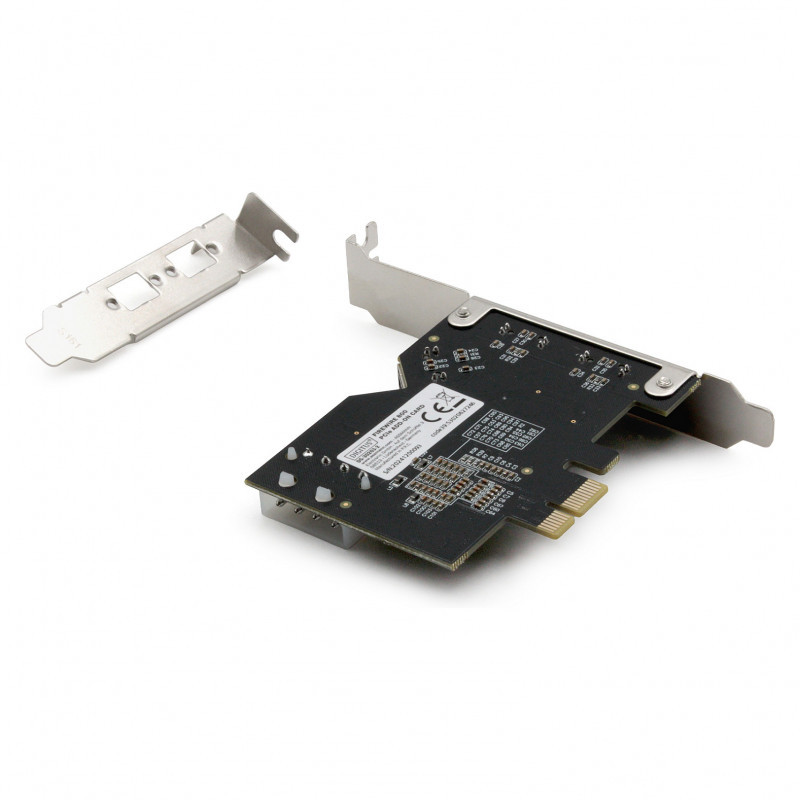 "Digitus Firewire 800 (1394b) PCIe Card. Internal. Connectivity technology: Wired, Host interface: PCIe. Maximum data transfer rate: 800 Mbit/s"\n"Extend your system by additional Firewire ports!
