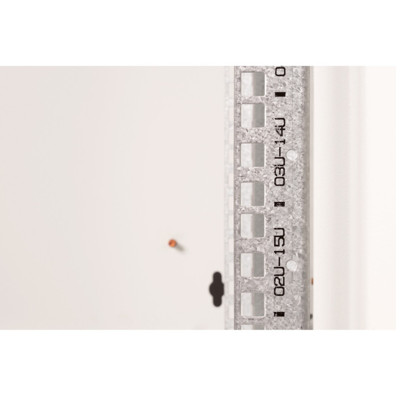 The network cabinets for wall installation from the Unique series were developed for especially convenient and flexible network cabling. There is a sliding cable inlet with foam rubber seal in the roof of each cabinet. The back wall and floor plate are equipped with pre-cut cable inlets with a plastic cover. To accommodate a fan module, the roof structure is also equipped with a pre-cut area. Two pair of galvanized 483 mm (19”) profile rails labeled with rack units readable in both directions are installed on the inside. Their depth can be adjusted. Each cabinet is made of up to 1.5 mm thick sheet steel. Coloring is done with electrostatic powder coating in the standard colors gray (RAL 7035) or jet black (RAL 9005). Removable and lockable side walls in a modular design as well as lockable and removable front door improve accessibility. The door hinges can be switched. Wall installation is accomplished in two easy work steps: The housing frame plate is bolted on the wall and then connected with the housing. With optionally available levelling feet or casters, the wall housings from the Unique series can also be used as a free-standing unit."
