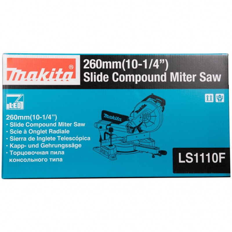 "Makita LS1110F. Idle speed (max): 4500 RPM, Cutting depth (90º): 9.1 cm, Cutting width (90°): 31 cm. Power source: AC, Input power: 1450 W, Cable length: 2 m. Width: 497 mm, Depth: 745 mm, Height: 565 mm. Blade diameter: 26 cm"\n