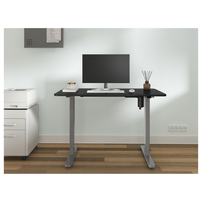"Equip ERGO Electric Sit-Stand Desk Frame with Desktop, Grey. Type: Straight, Table top shape: Rectangular shape, Table top material: Plastic. Input voltage: 100 - 240 V, Power source type: AC. Width: 600 mm, Depth: 1180 mm, Height: 1200 mm. Package width: 385 mm, Package depth: 210 mm, Package height: 1295 mm. Country of origin: China"\n"""The equip® ERGO Electric Sit-Stand Desk Frame creates your own desk space that lets you stand up during the long workday with an electric height adjustable frame. Periodically standing throughout the day can help relieve tension on the neck, back, and shoulders, as well as increase blood flow and reduce stress. Enjoy being able to stand up in seconds with this sturdy frame featuring a motor lift system for smooth height transitions, telescopic height adjustment for ideal ergonomic viewing.