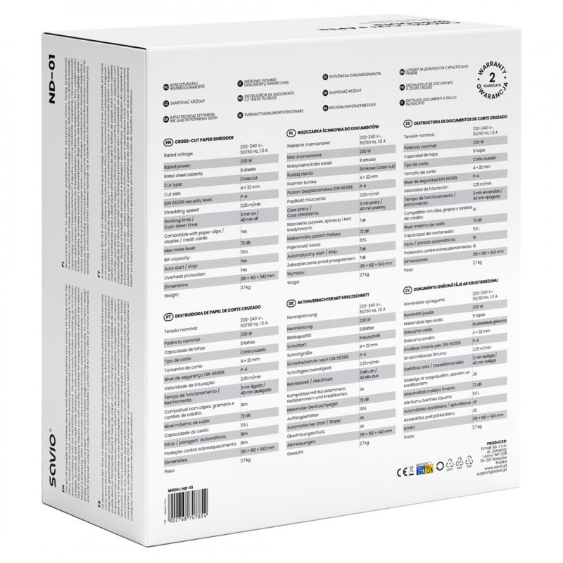 Savio ND-01 dokumentų naikiklis Kryžminis 72 dB Juoda