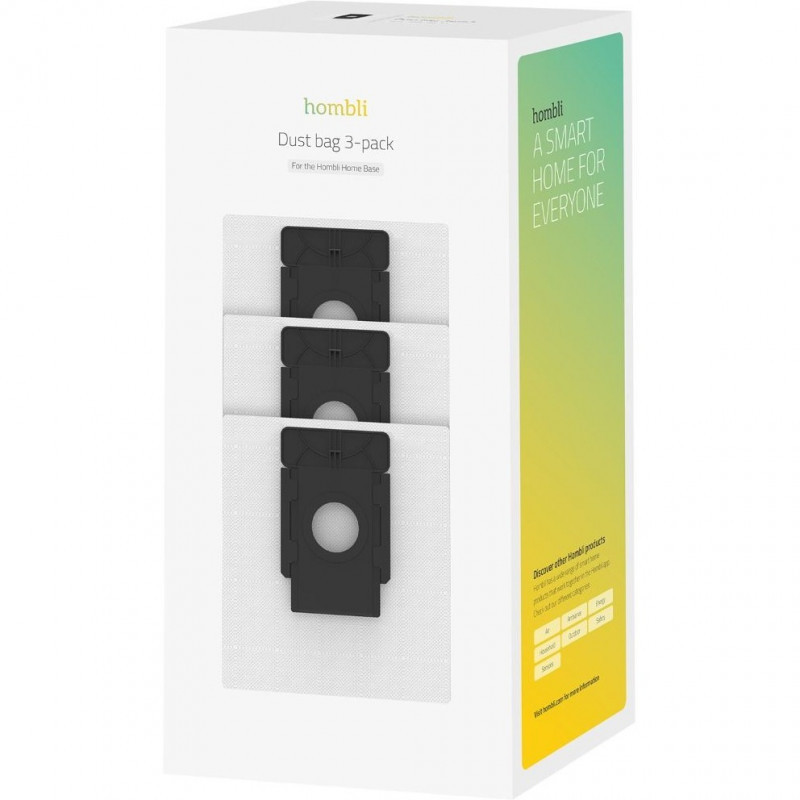"Hombli HBVA-0100. Product type: Dust bag, Suitable for vacuum type: Robot vacuum, Product colour: Black, White. Package type: Box. Quantity per pack: 3 pc(s), Number of dust bags: 3 pc(s)"\n"Experience the comfort of a clean house when you come home, without investing time or energy. These boring and time consuming household chores are now in the past! The Hombli Smart Robot Vacuum makes sure every desired part of your house is both dust free and mopped. Easily set up different cleaning programs or activate the smart vacuum from any location by using the Hombli app.