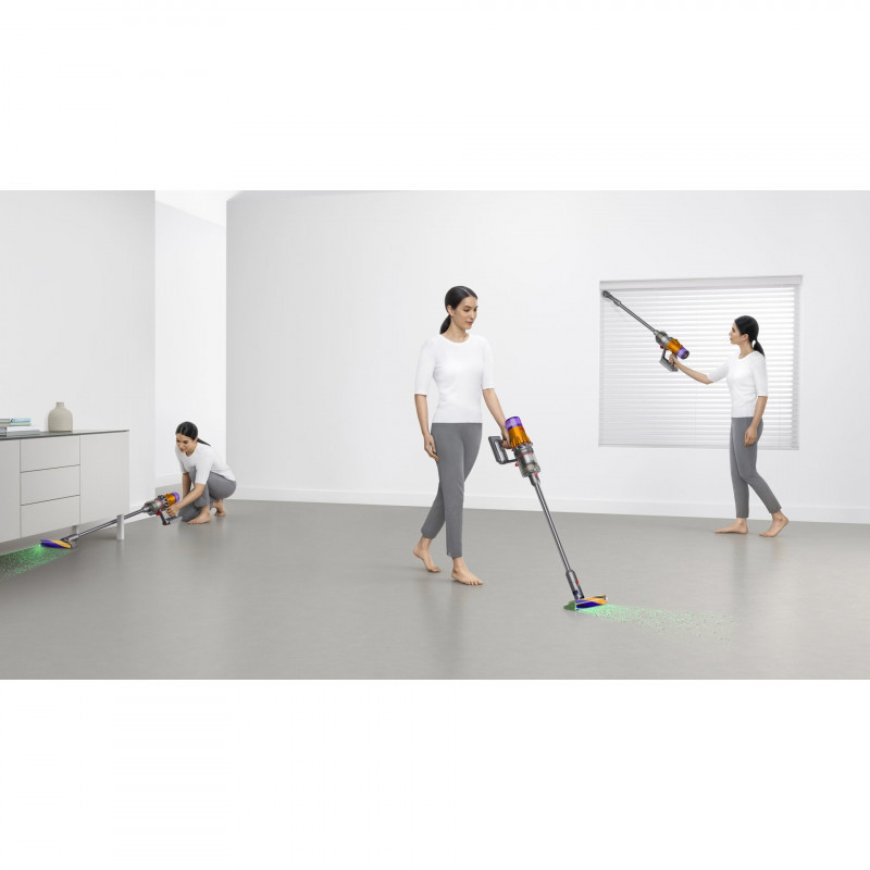 "Dyson V12 Detect Slim Absolute. Product type: 2-in-1 stick vacuum, Dust container type: Bagless, Product colour: Nickel, Yellow. Cleaning type: Dry, Dirt separating method: Cyclonic, Cleaning surfaces: Carpet, Hard floor, Soft floor. Power source: Battery, Maximum input power: 545 W, Battery voltage: 29.4 V. Package weight: 5.34 kg. Width: 250 mm, Depth: 252 mm, Height: 1234 mm"\n