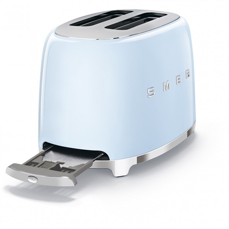 "Smeg 50's Style Toaster TSF01PBEU Pastel Blue. Number of slices: 2 slice(s), Product colour: Blue, Housing material: Steel. Power: 950 W, AC input voltage: 220 - 240 V, AC input frequency: 50 - 60 Hz. Cord length: 1 m, Width: 310 mm, Depth: 195 mm. Country of origin: China. Pallet gross weight: 270 kg, Layers per pallet: 7 pc(s), Products per pallet layer: 10 pc(s)"\n"Smeg's iconic retro design offers a pop of colour and a premium enamelled finish. Whether you're preparing breakfast before the school run, or a luxurious breakfast in bed, the Smeg TSF01 two slot toaster has got it covered. This two slice toaster is perfect those who like to make a statement in the kitchen, but can also handle warming pastries, bagels, and toasting treats!